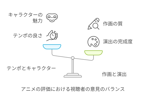 こうした評価は、視聴者のアニメに対する価値観や好みによって異なるため、明確に良し悪しを判断しにくい点でもあります。
